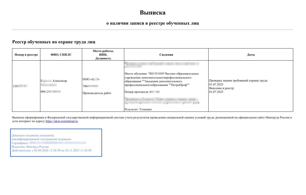 Обучение дает возможность не только повысить квалификацию, но и открыть карьерные перспективы: инженеры по охране труда могут занимать руководящие должности, участвовать в разработке стратегий по безопасности, совершенствовать технологии производства с учетом требований охраны труда.